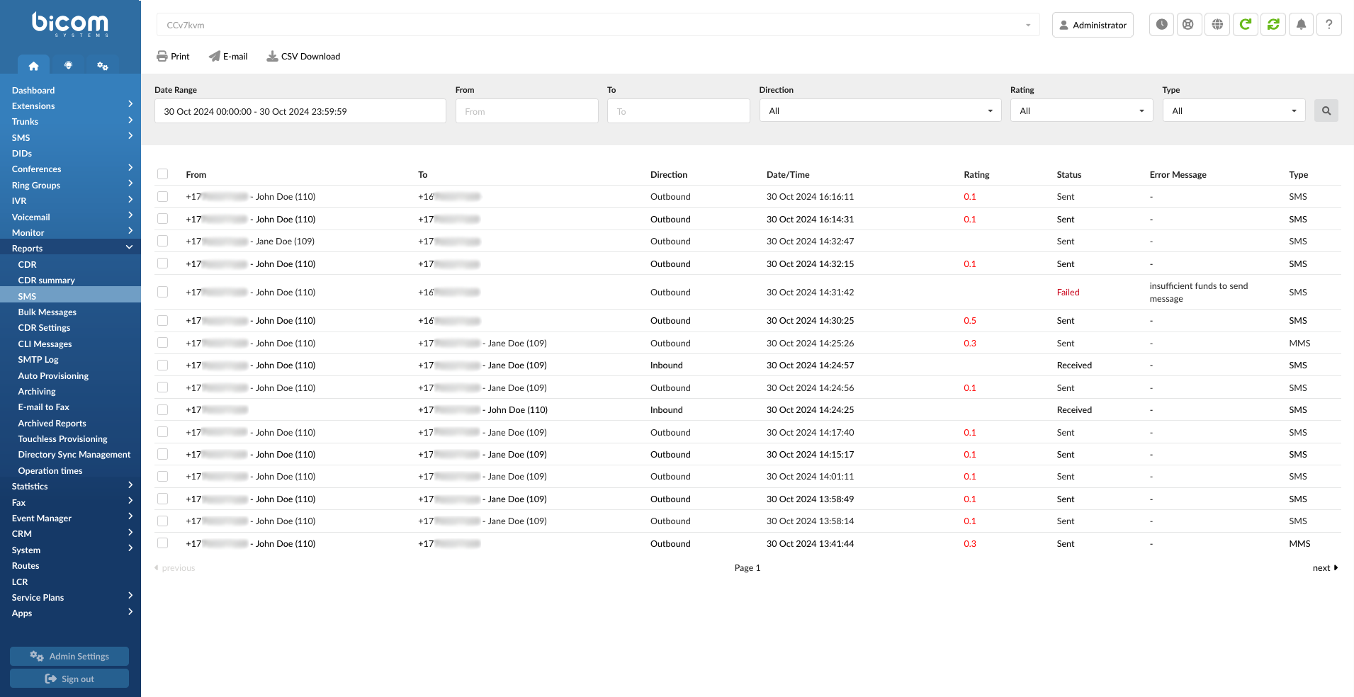 NOTE: This CSV file contains the data displayed on the 'Bulk Messages' page. Users can choose to download specific entries or select all of them.
