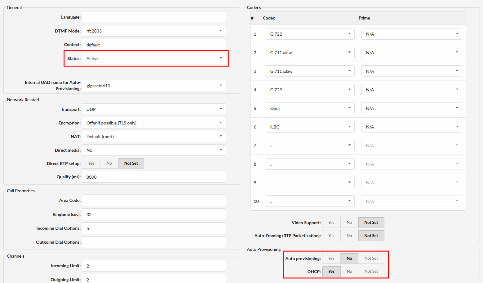 If you want to include additional UAD configuration for the Gigaset N670, add fields to the User Agent General Auto Provisioning Template in the Settings -> UAD -> Gigaset N670 menu, or add them directly to the extension in the UAD Auto Provisioning Template section.