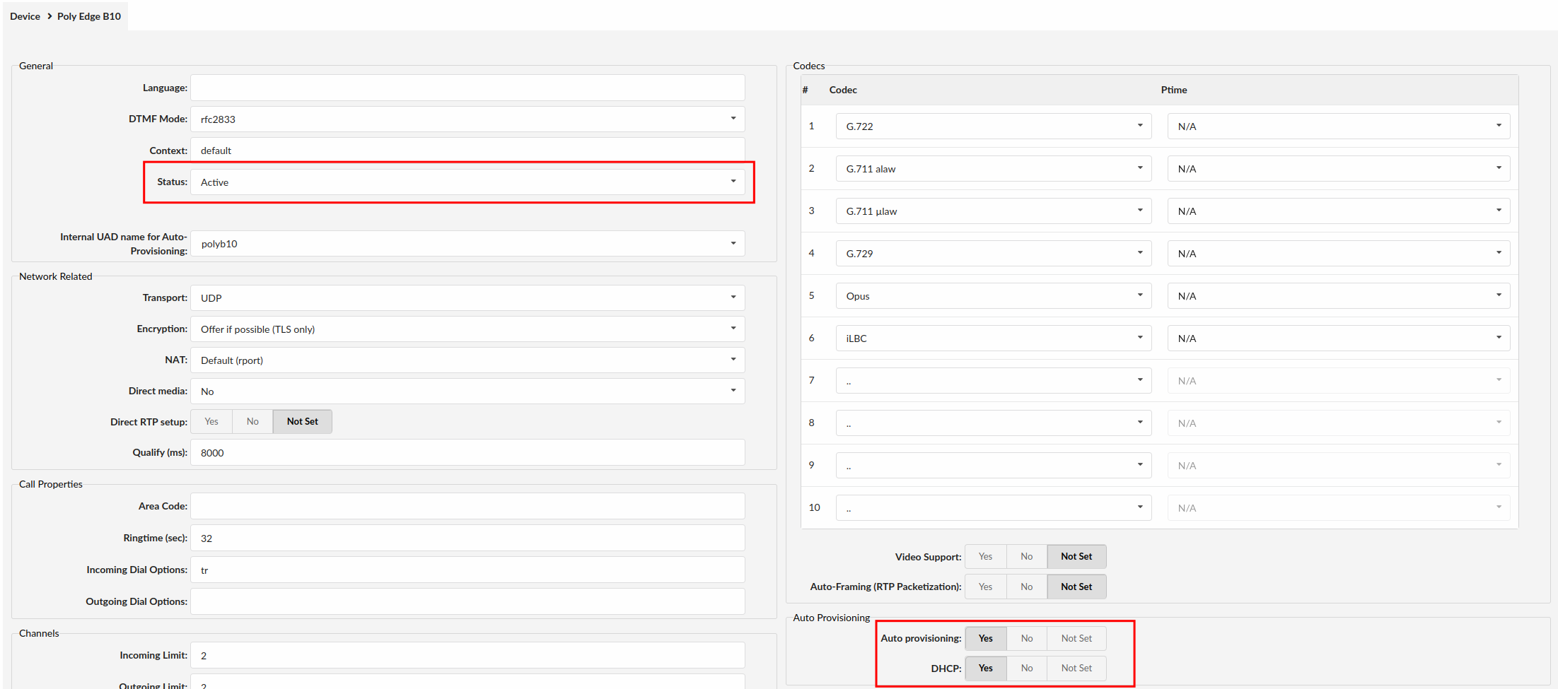 If you want to include some additional UAD configuration for Poly Edge B10, just add fields to User Agent General Auto Provisioning Template in Settings -> UAD -> Poly Edge B10 menu, or add them directly to the Extension in UAD Auto Provisioning Template section.